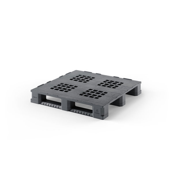 Ciężka paleta plastikowa o wymiarach 1140x1140x165 mm z ażurowym blatem i ładownością 2500 kg. Dzięki dwuwarstwowym ściankom paleta jest bardziej odporna na uszkodzenia. Idealna do stosowania na przenośnikach taśmowych, rolkowych i innych zautomatyzowanych systemach magazynowych.
