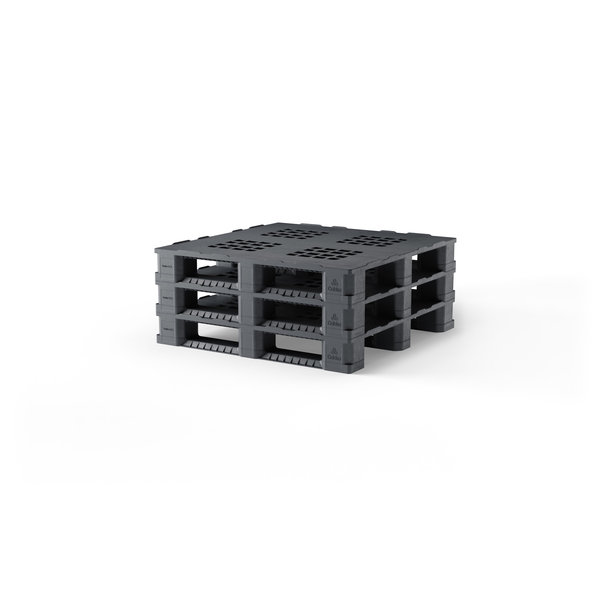 Dzięki systemowi z 3 płozami ta paleta ma nośność w regale 1250 kg. To sprawia, że paleta jest naprawdę wszechstronna. Można go również sztaplować do 15 sztuk, co daje rozmiar 1140x1140x2475 mm na stos.