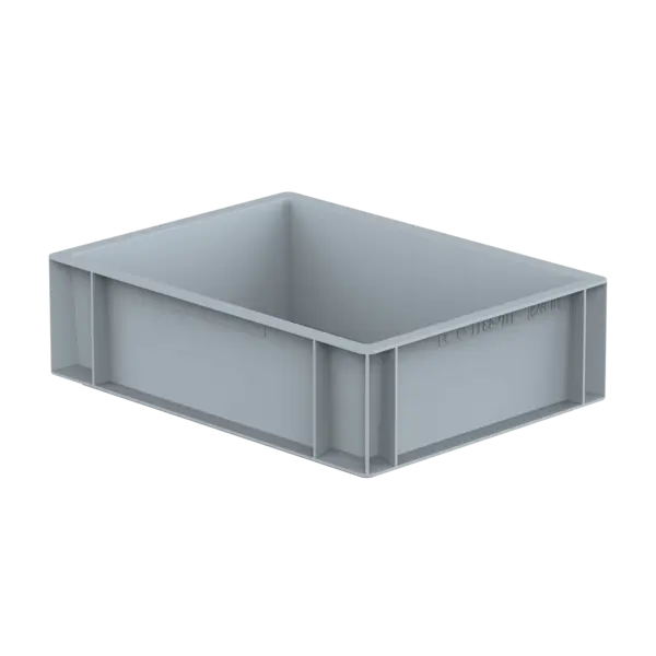 Pojemnik plastikowy Euro wykonany z recyklingu tworzywa sztucznego PP, materiału trwałego i odpornego na uszkodzenia, z pełnym dnem i ściankami bocznymi dzięki czemu jest łatwy do czyszczenia. Wymiary wewnętrzne pojemnika to 365x236x112 mm a jego waga to 750 gram.