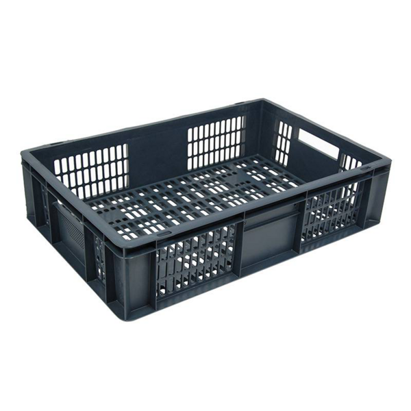 Skrzynka ażurowa Euronorm 600x400x150mm zapewnia dobrą wentylację przechowywanych produktów spożywczych. Ażurowe dno oraz ścianki ułatwiają cyrkulację powietrza pomiędzy składowanymi produktami. Konstrukcja skrzynki umożliwia ustawianie w stos. Pojemnik jest powszechnie stosowany do transportu i przechowywania warzyw i owoców w sklepach i magazynach. Pojemniki są odporne na działanie niskich temperatur, dzięki czemu świetnie nadają się do takich zastosowań.
